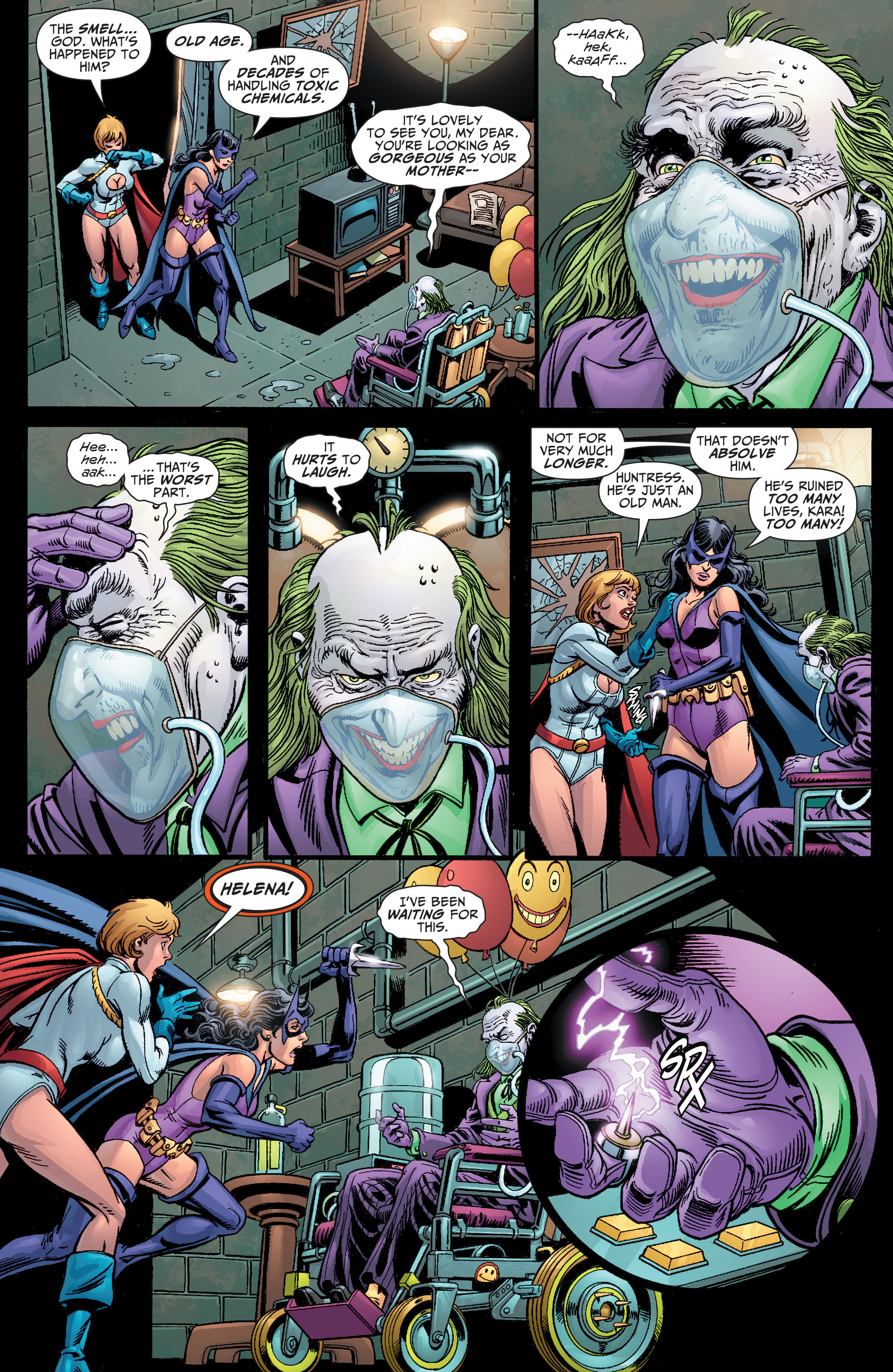 Though she was initially overjoyed that she was back home, Karen soon noticed some odd inconsistencies, such as conflicting histories and a more violent and murderous Huntress. But the biggest thing that tipped her off was the presence of another Power Girl!