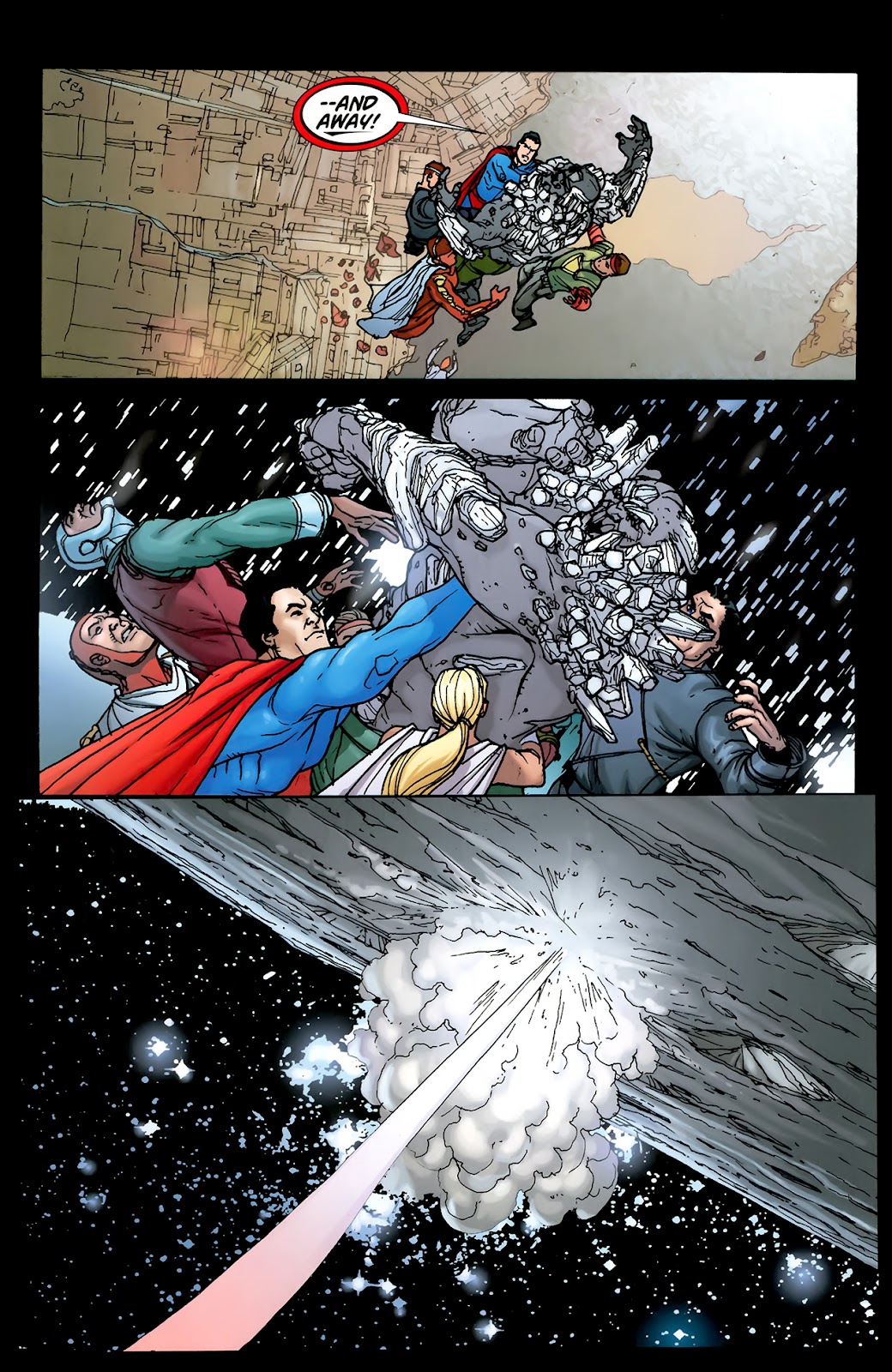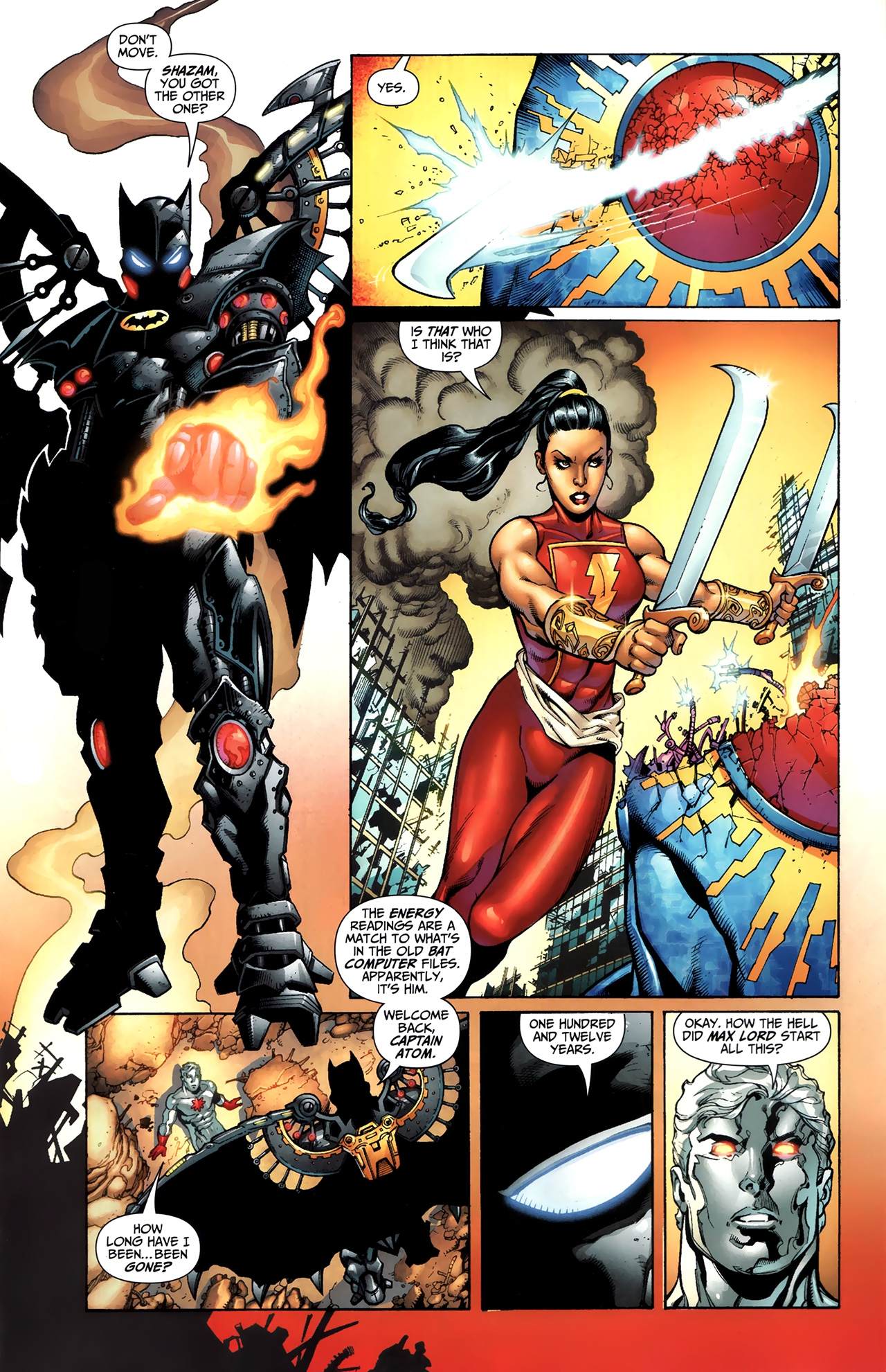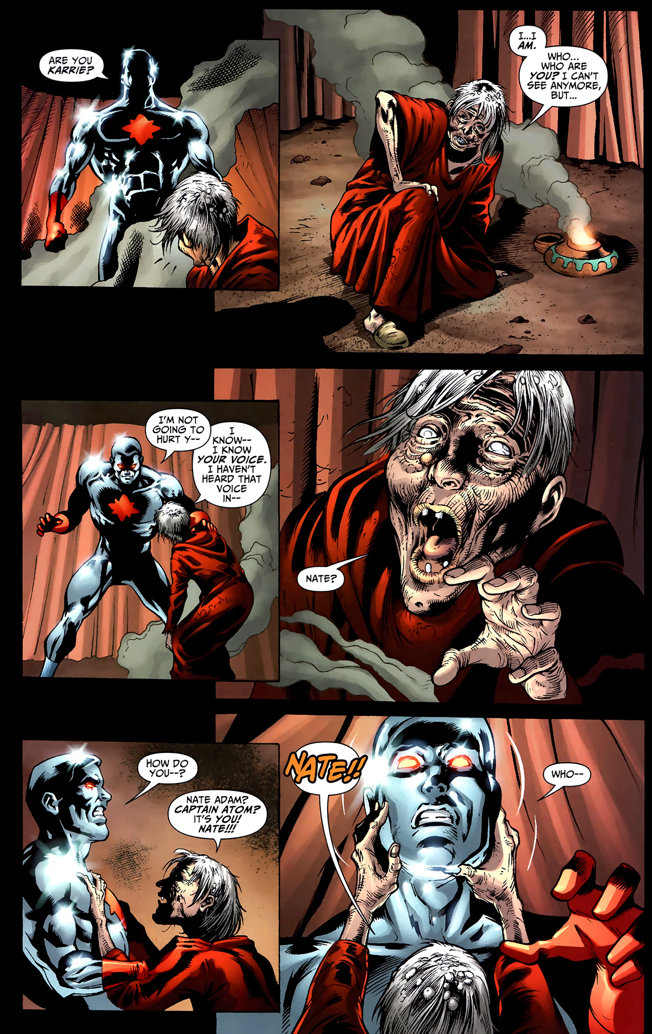 But aside from her restored origin, the survivors also revealed their plan to restore the multiverse, as they felt that the New Earth universe had become too desolate and grim. While she was at first conflicted, Karen came to oppose the idea when she learned that Alexander planned to destroy New Earth to bring the multiverse back. She tried to fight him, but was captured and placed inside of his machine. With the help of Power Girl, among many other unwilling power sources, Alexander successfully restored the multiverse, but his plan to destroy New Earth was stopped by the remaining heroes. Power Girl would later be freed from the machine and take part in the final battle, which ended with a tearful farewell to the dying Earth-Two Superman