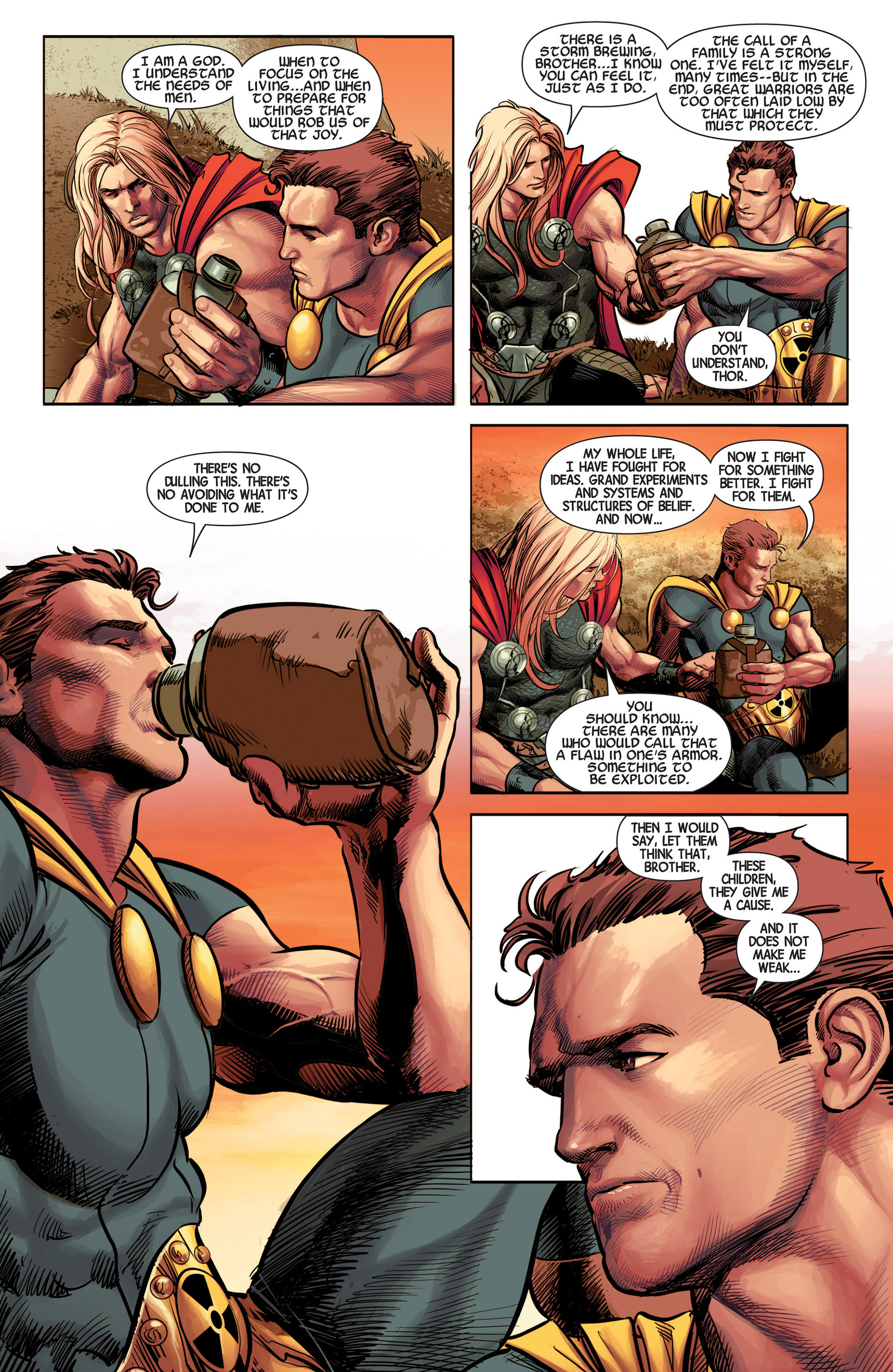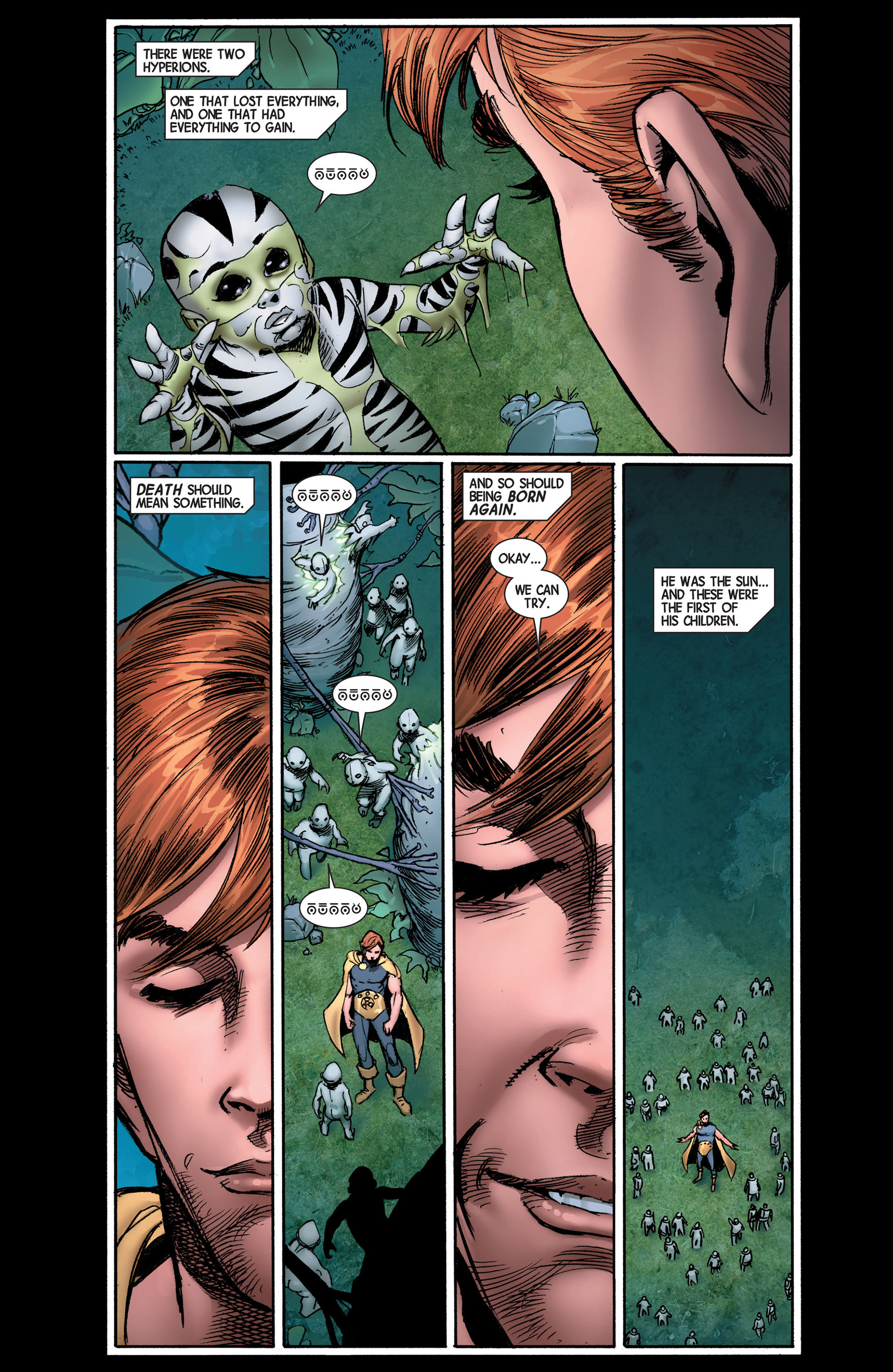 During his time with the Avengers, he befriended Thor, and the two quickly became brothers-in-arms. This, combined with his relationship with the Children of the Sun, allowed Marcus to overcome his grief at his dead world. With their words and actions to help inspire him, Hyperion focused his efforts on protecting his new homeworld.