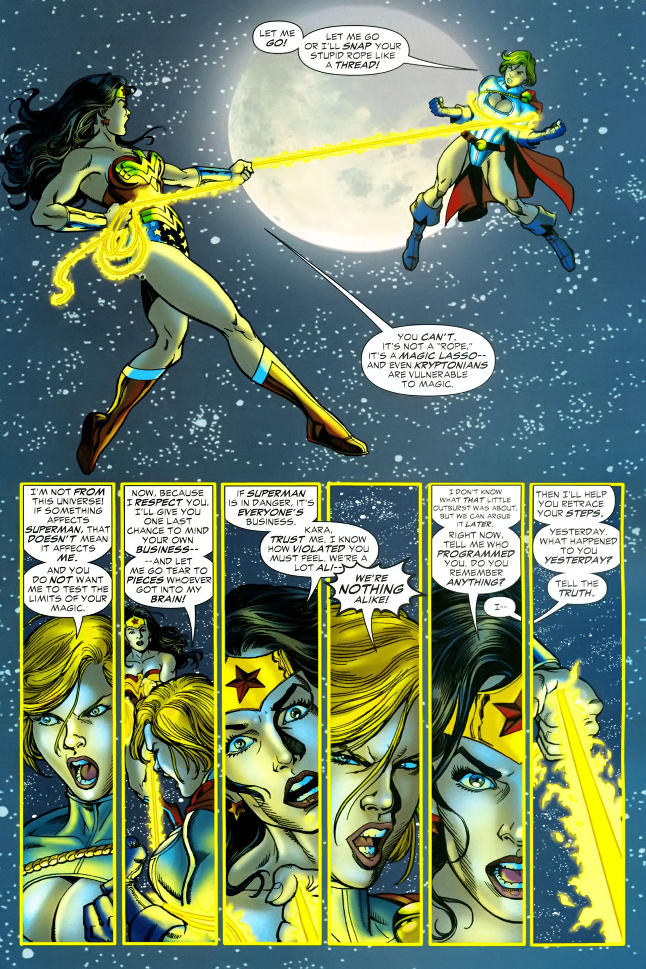 Believing her to be an impostor, this world’s more brutal Robin and Power Girl tried torturing information out of her, but she was saved after the New Earth JSA appeared and helped clear up the misunderstanding.