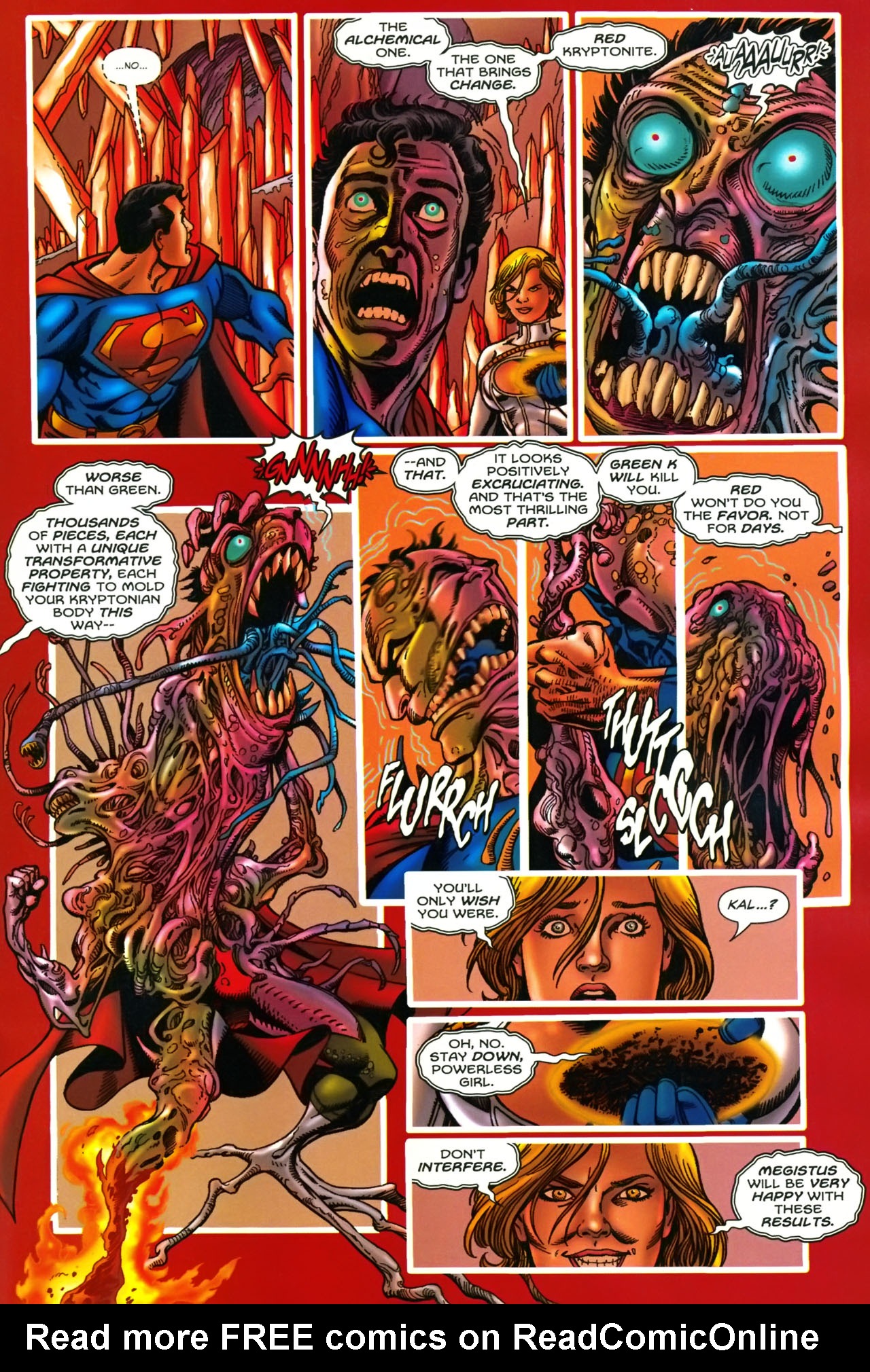 But anyway, let’s get back on track. In an attempt to rectify the confusion among fans, writer Geoff Johns decided to take Karen back to her roots. He started by planting seeds in JSA #32 where Dr. Mid-Nite reveals her powers are biological, rather than magic like her revised origin claimed. Then in Superman #189, he’d have her being affected by Kryptonite, with both her and Superman questioning how that’s possible. JSA #50 would then have Arion reveal he lied to Power Girl about being her grandfather.