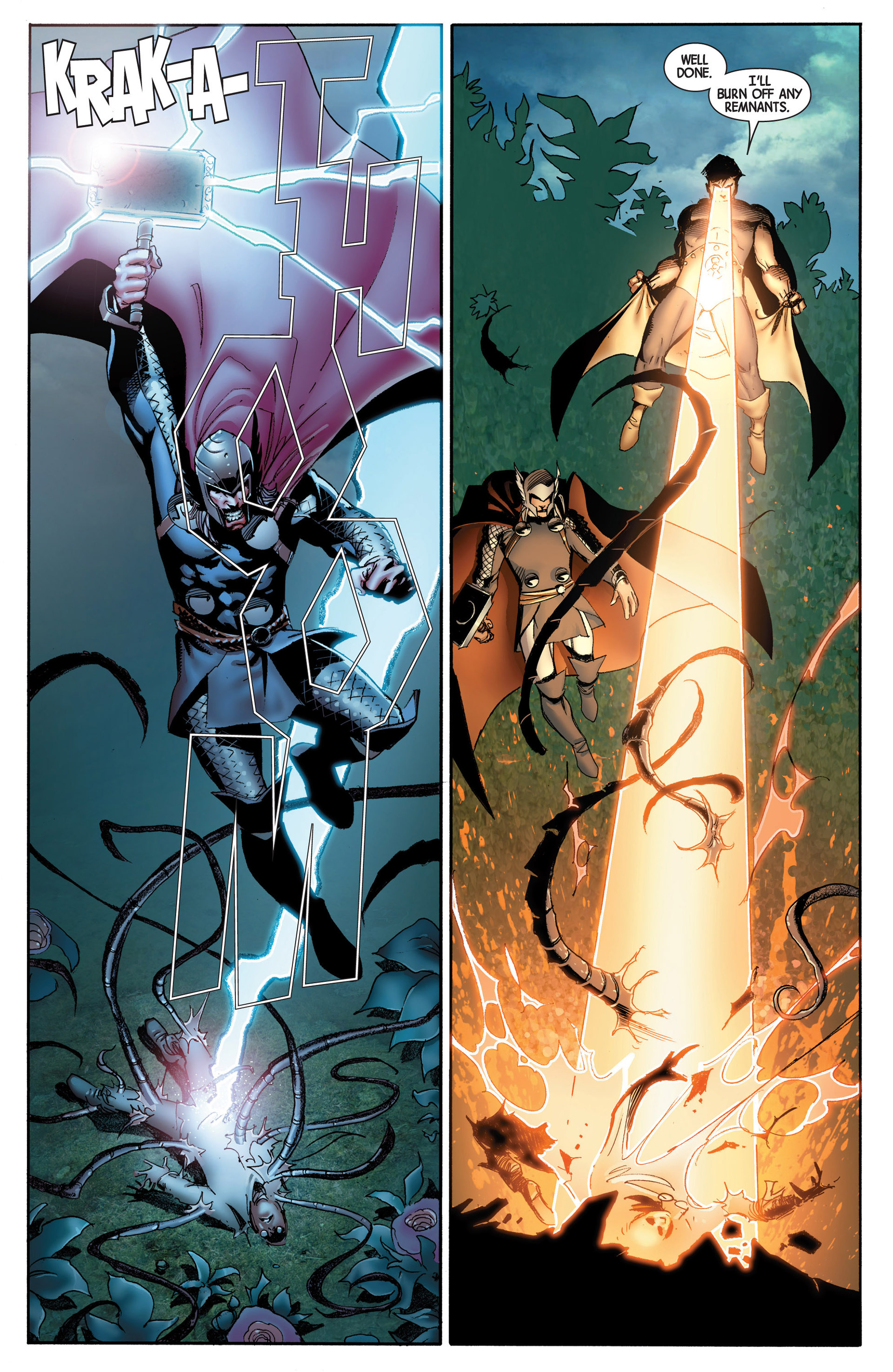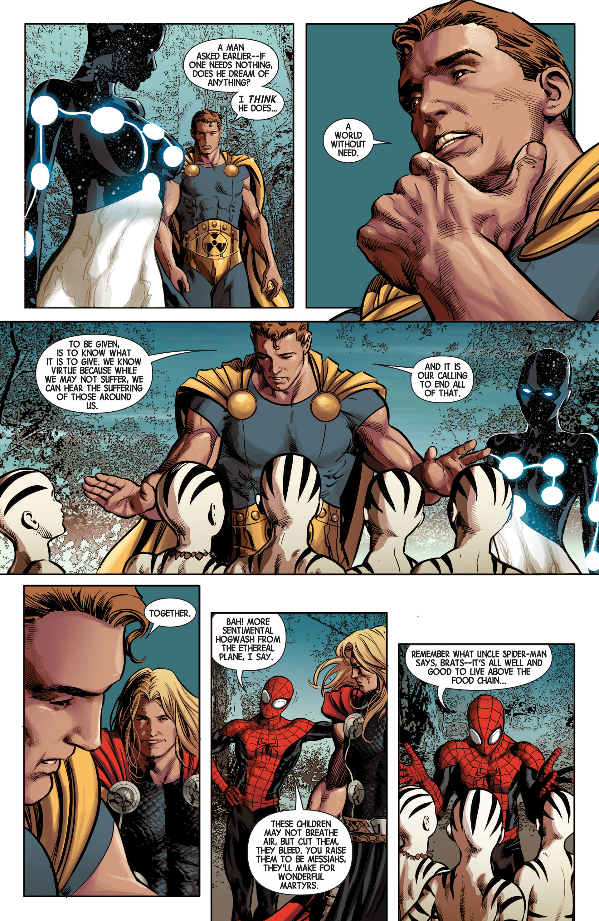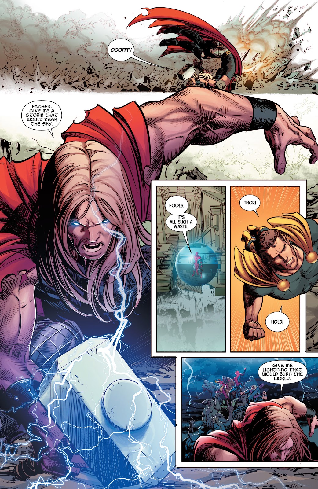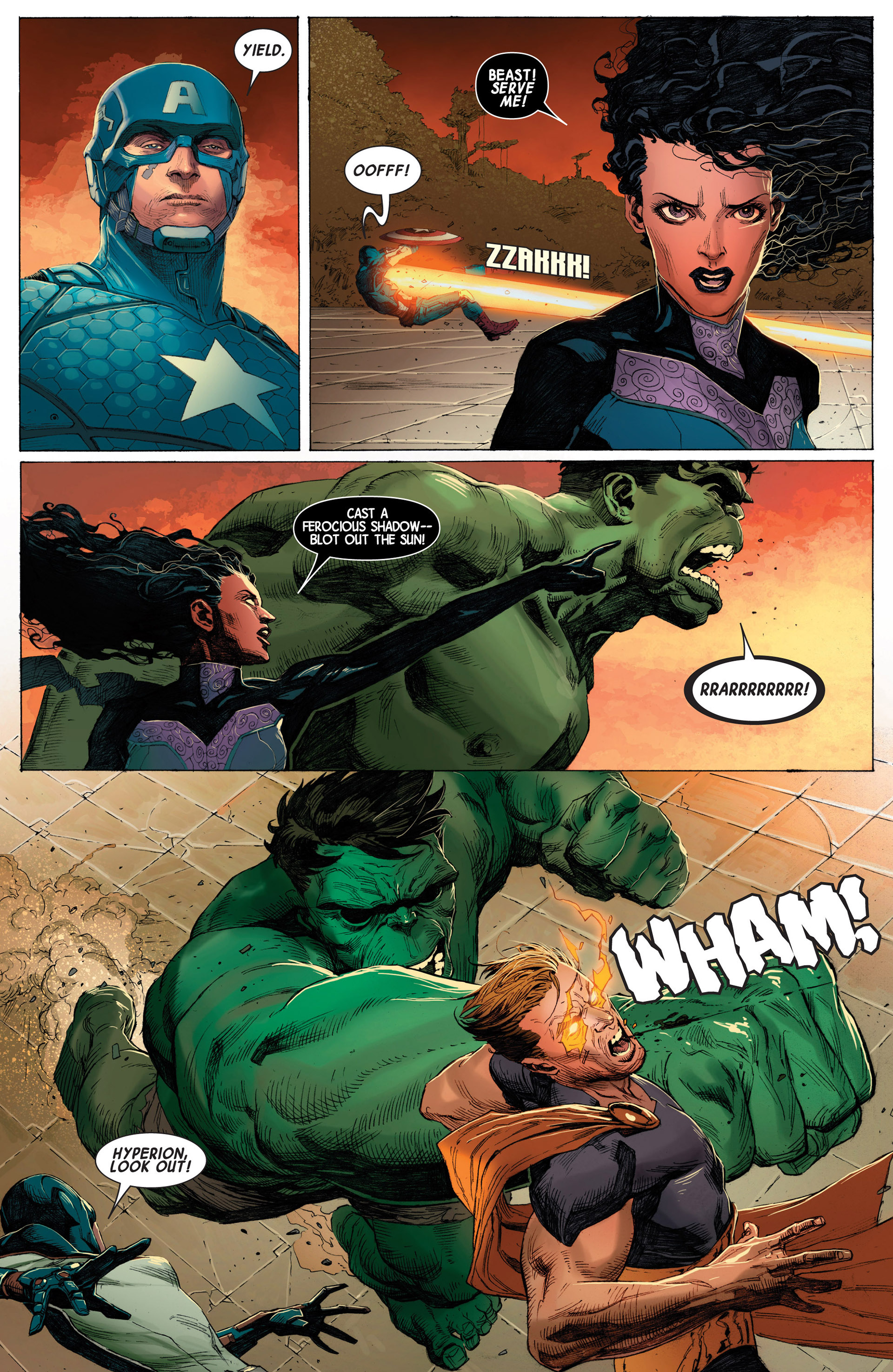 These were the Beyonders, nigh-omnipotent beings intent on destroying the multiverse. Now face to face with the ones responsible for all this death and destruction, the Avengers did their best to fight back, but one by one they fell before their oppressors. In time, only Hyperion and Thor remained to combat the endless swarm. Even with Hyperion rendered blind and both knowing they stood no chance, they charged into battle one last time, facing their deaths with dignity.