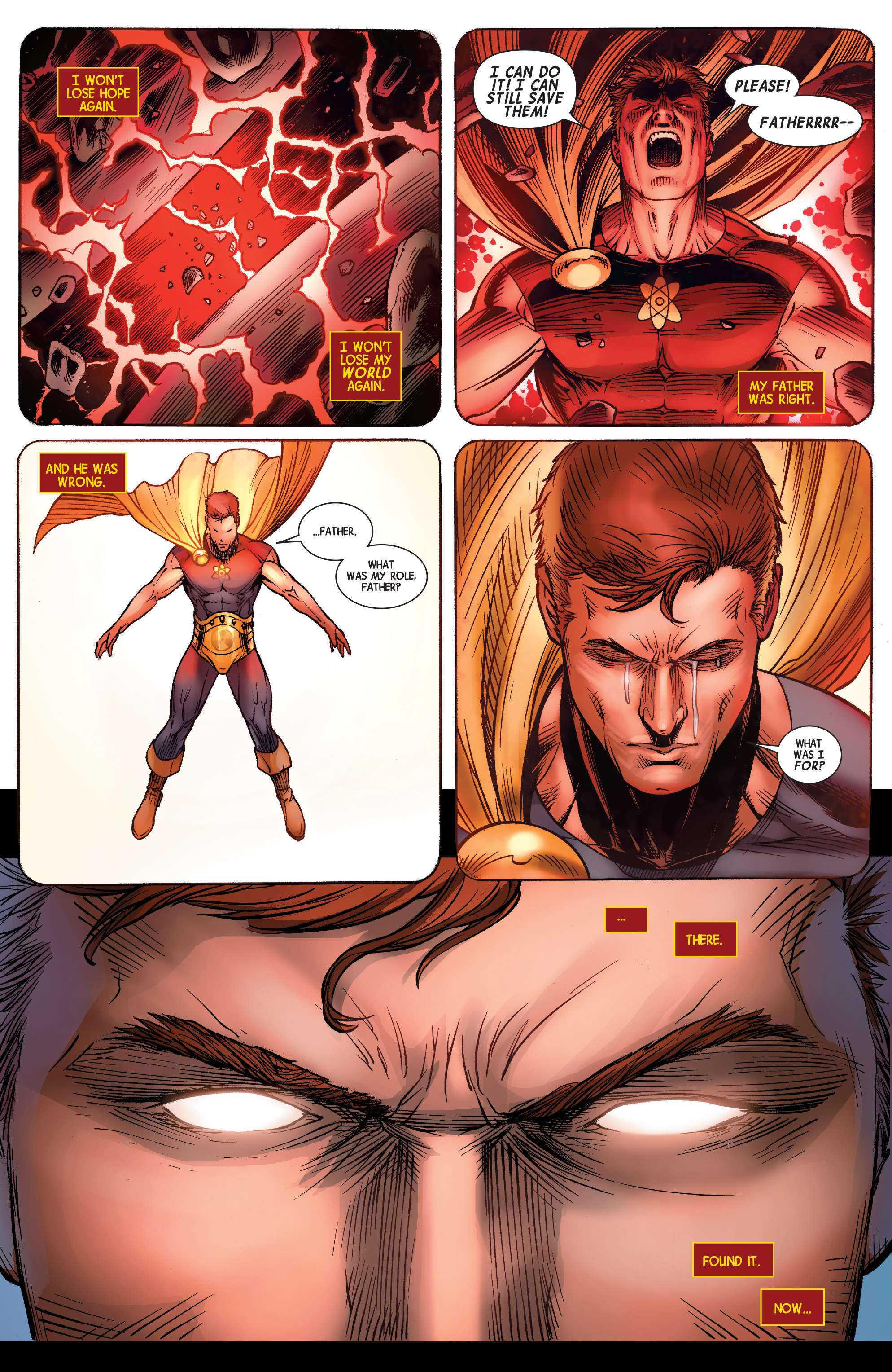 In a surprise ambush, the Squadron Supreme battled Namor and his Atlantean army, while Hyperion decided to grant Namor a more fitting punishment. If the Sub-Mariner was so willing to snuff out countless lives to ensure his kingdom’s safety, Hyperion would show him how it felt to lose everything he loved.