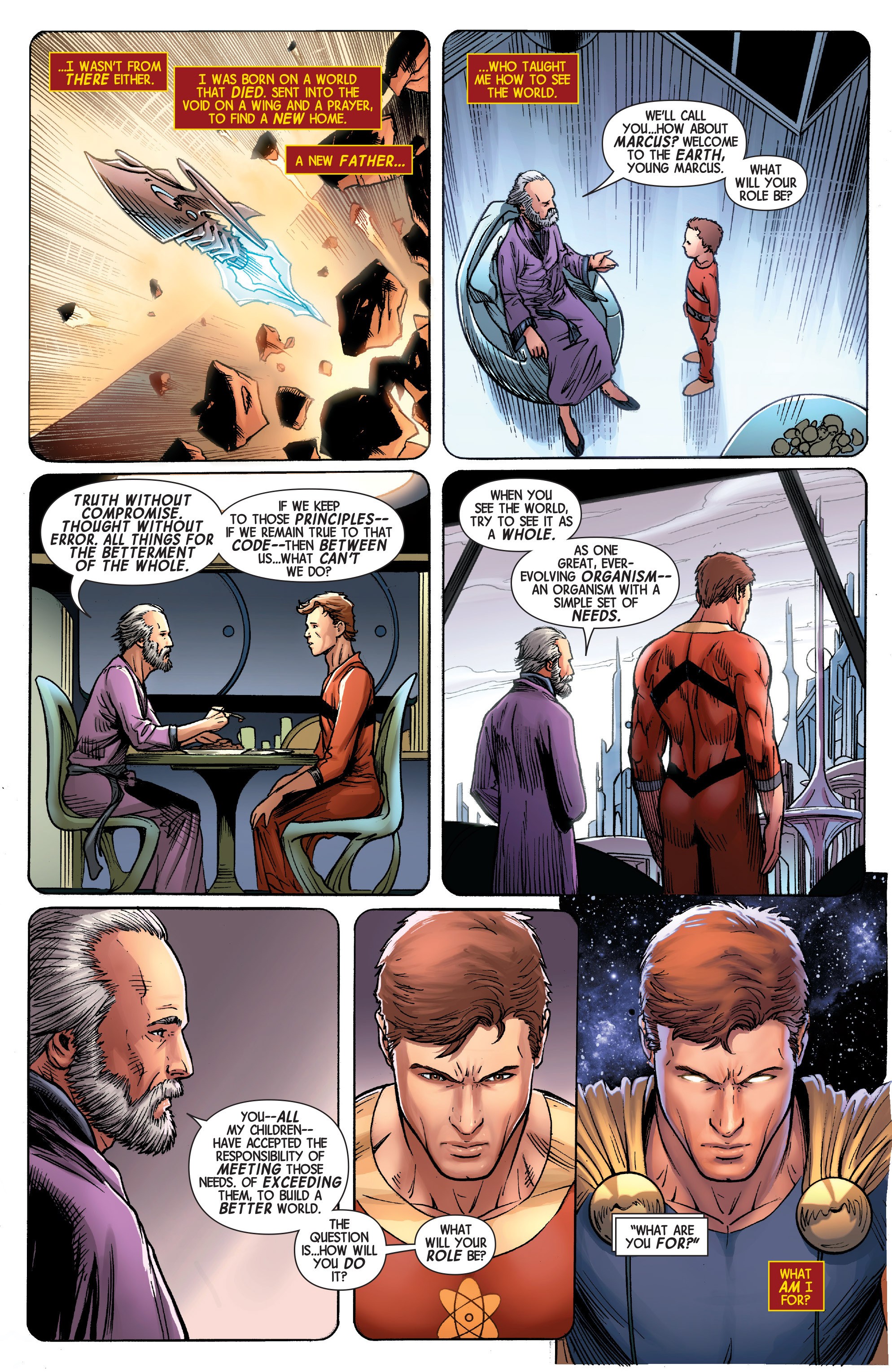 Born to a dying world, an unnamed infant was rocketed to Earth as the sole survivor of the Eternals, a race of cosmically powered guardians. Upon his arrival the child was discovered by a man known only as “Father Milton.” Father would go on to raise the boy as his own, giving him the name Marcus and teaching him morality.