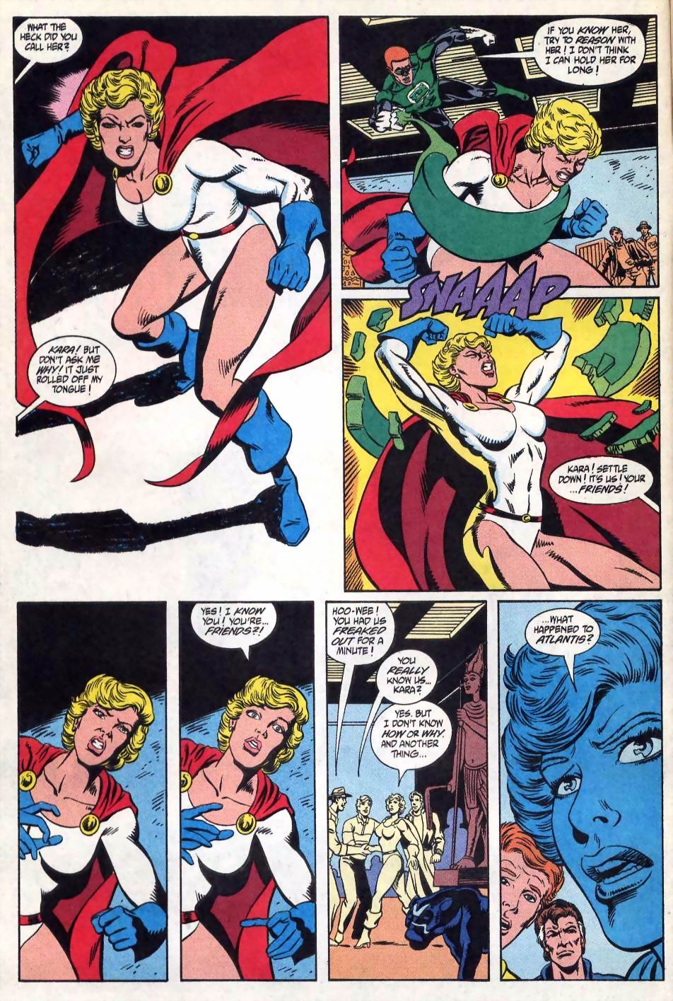 At the request of one of her creators, Gerry Conway, Power Girl’s origin in the Post Crisis continuity would receive a drastic overhaul. Secret Origins #11 “revealed” that everything she experienced on Earth-Two was actually false memories. Her “true” origin story was that she was an Atlantean born 45,000 years ago (some comics claim it was 50,000 years ago), and her grandfather- the sorcerer Arion- had placed her in suspended animation, sending her to the present so she could escape being slaughtered by his old enemy Garn.