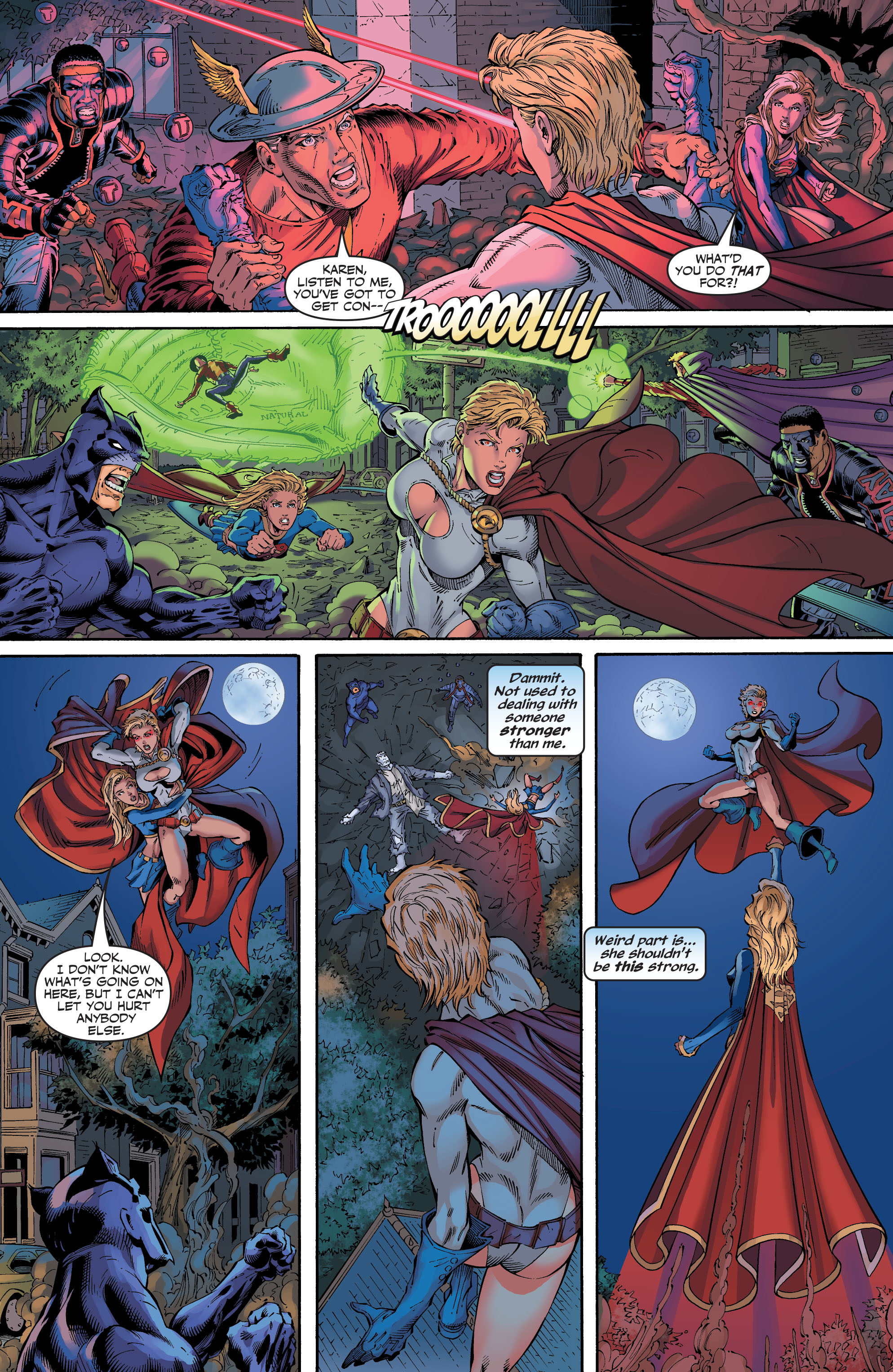 Though she was initially overjoyed that she was back home, Karen soon noticed some odd inconsistencies, such as conflicting histories and a more violent and murderous Huntress. But the biggest thing that tipped her off was the presence of another Power Girl!