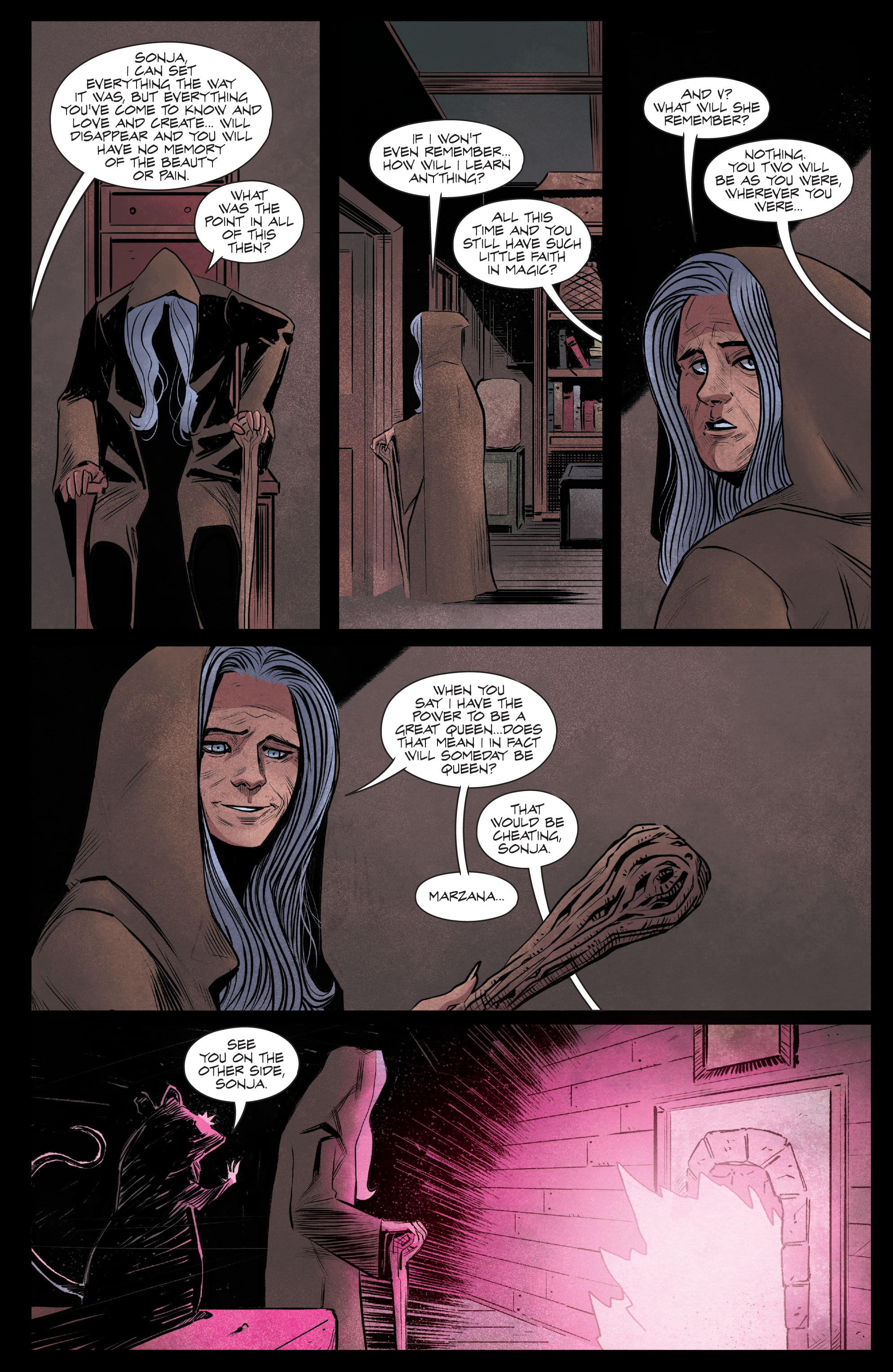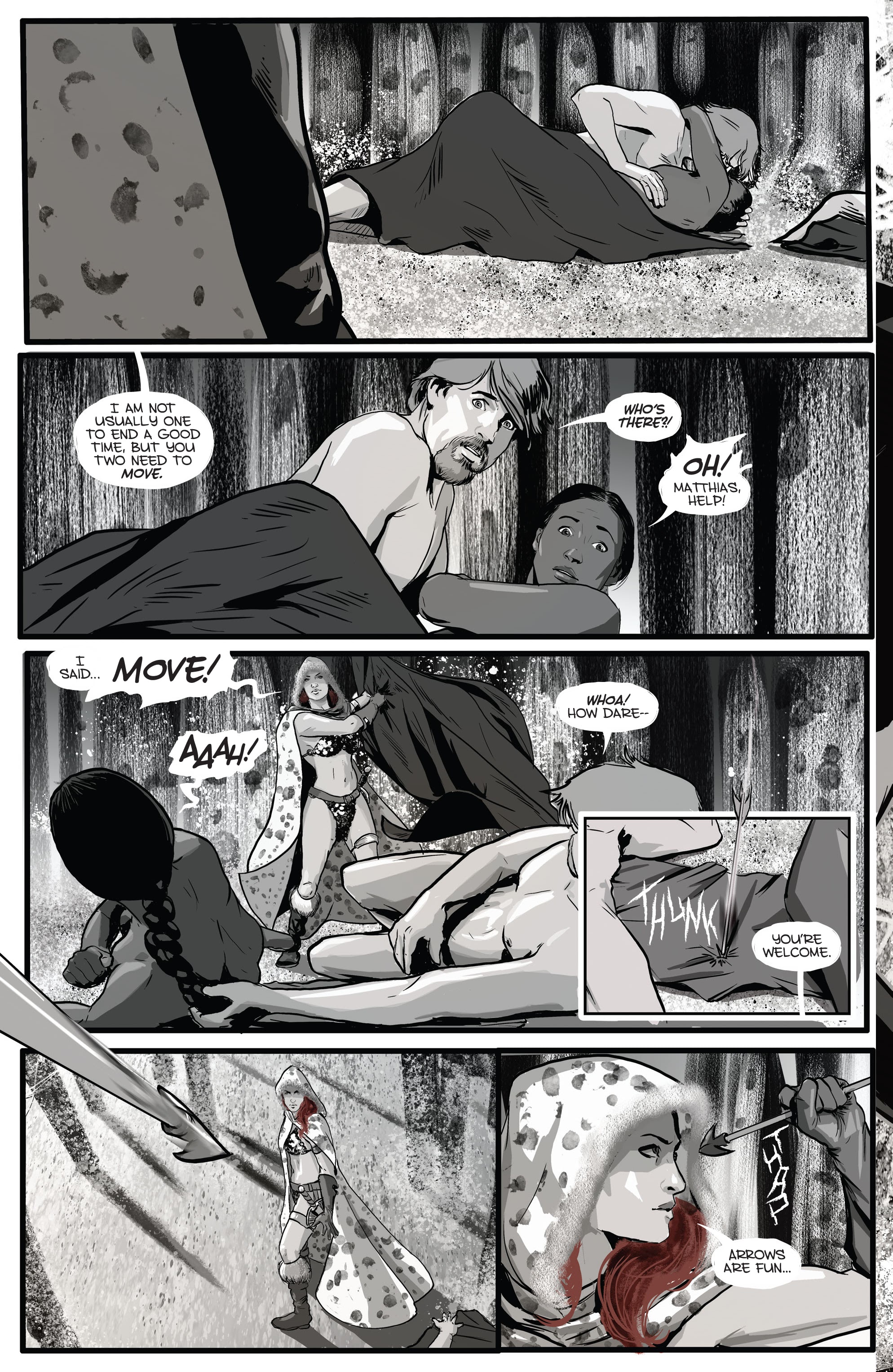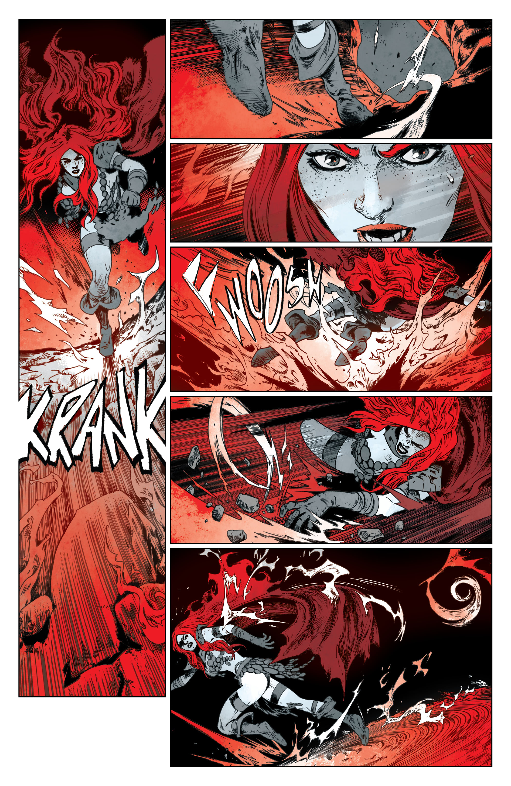 Wanting to prevent the prophecy from passing, the Favored’s leader Tamil attempted to sacrifice Sonja to Scathach, but her efforts were rendered futile when Sonja’s jailer (and supposed sister) Zora took pity on her. In a strange twist of fate, the Drommach invaded their cave at the same time, and as her own people were slain, Sonja confronted Scathach, who revealed that her ties to Sonja’s past ran deeper than expected.