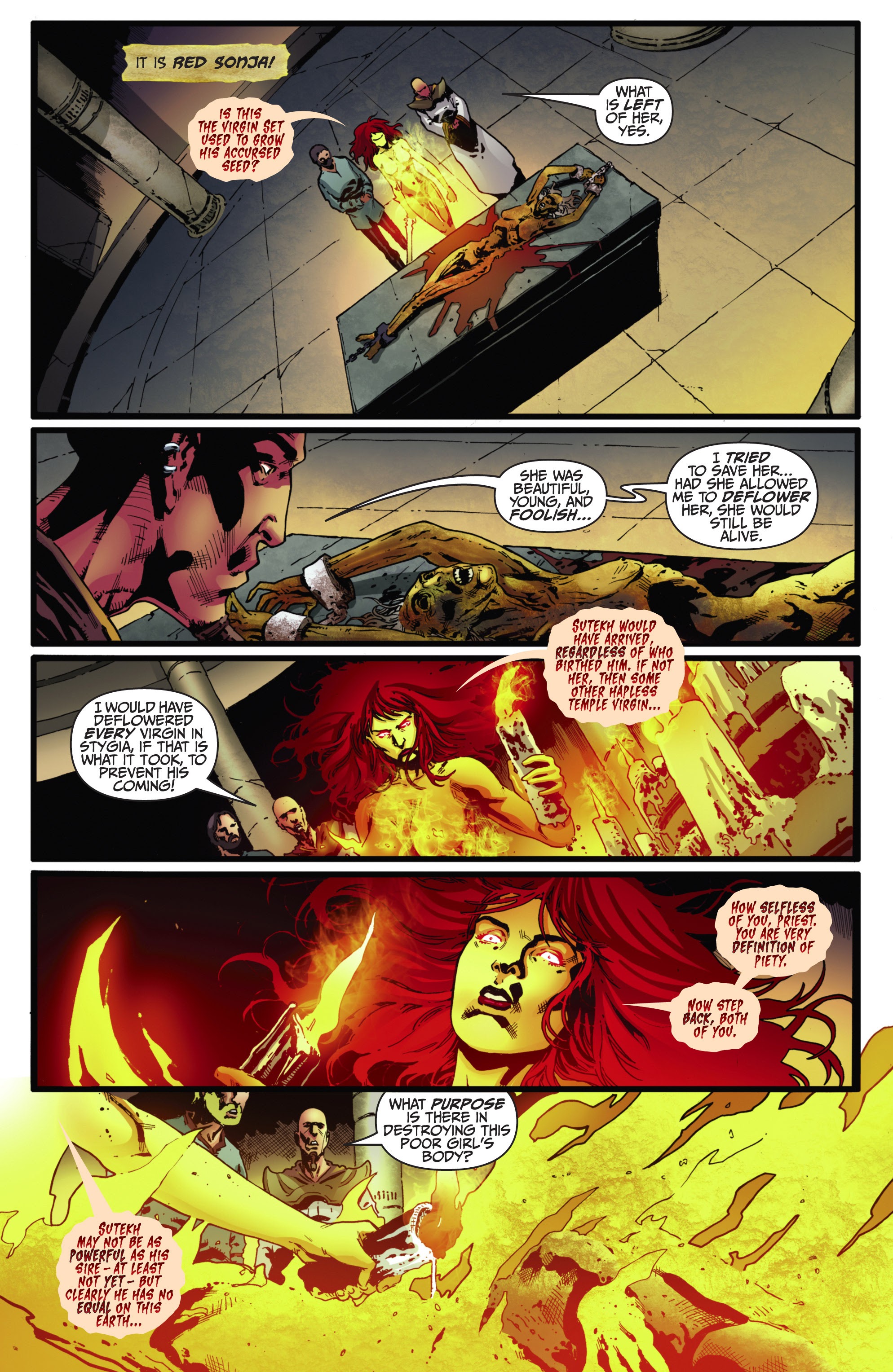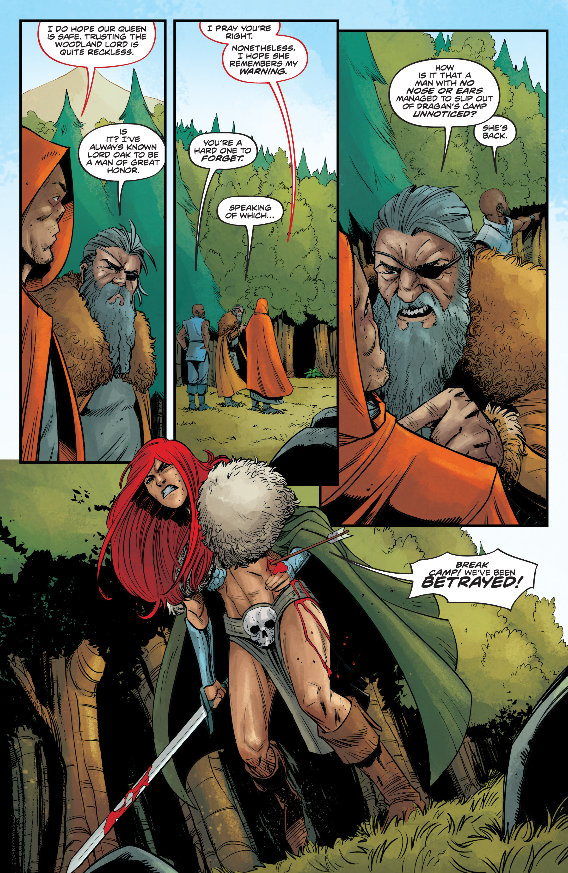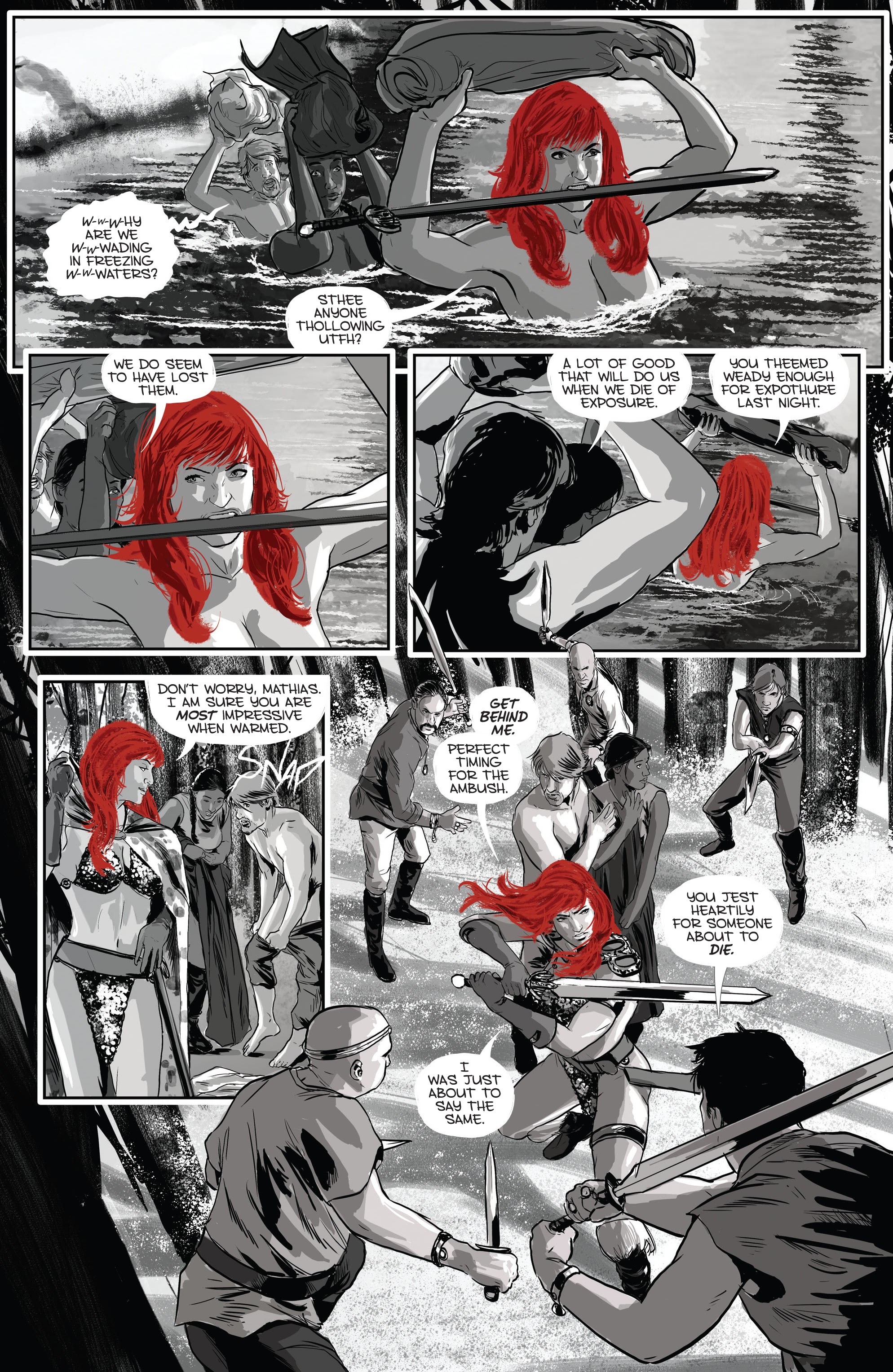 With Osin (a companion from her previous life) acting as her trainer, Sonja became well-versed in the use of a sword, aided in part by subconscious memories of her past selves. Upon learning her husband’s killer, Lucan Martur, had also kidnapped her sister Verona, Sonja stormed his castle, only to learn the two were actually in league. While there, she’d also discover one of Lucan’s most guarded treasures: the armor and sword of the mythical hero Red Sonja. Stirred by subconscious memories, Lady Sonja donned the armor, and in doing so, fully regained her past memories.