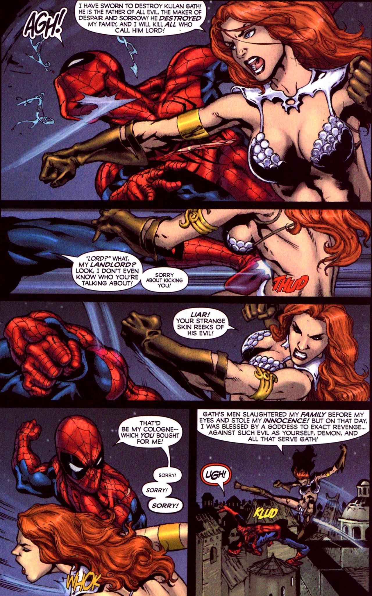 Thousands of years after her own time, Sonja would be resurrected in modern day New York when her soul unknowingly possessed the body of Mary Jane Watson. Wielding her former blade, the She-Devil teamed up with the Amazing Spider-Man to battle a resurrected Kulan Gath. With their combined strength, Sonja put an end to the sorcerer’s reign of terror, allowing her vengeful soul to finally obtain peace.