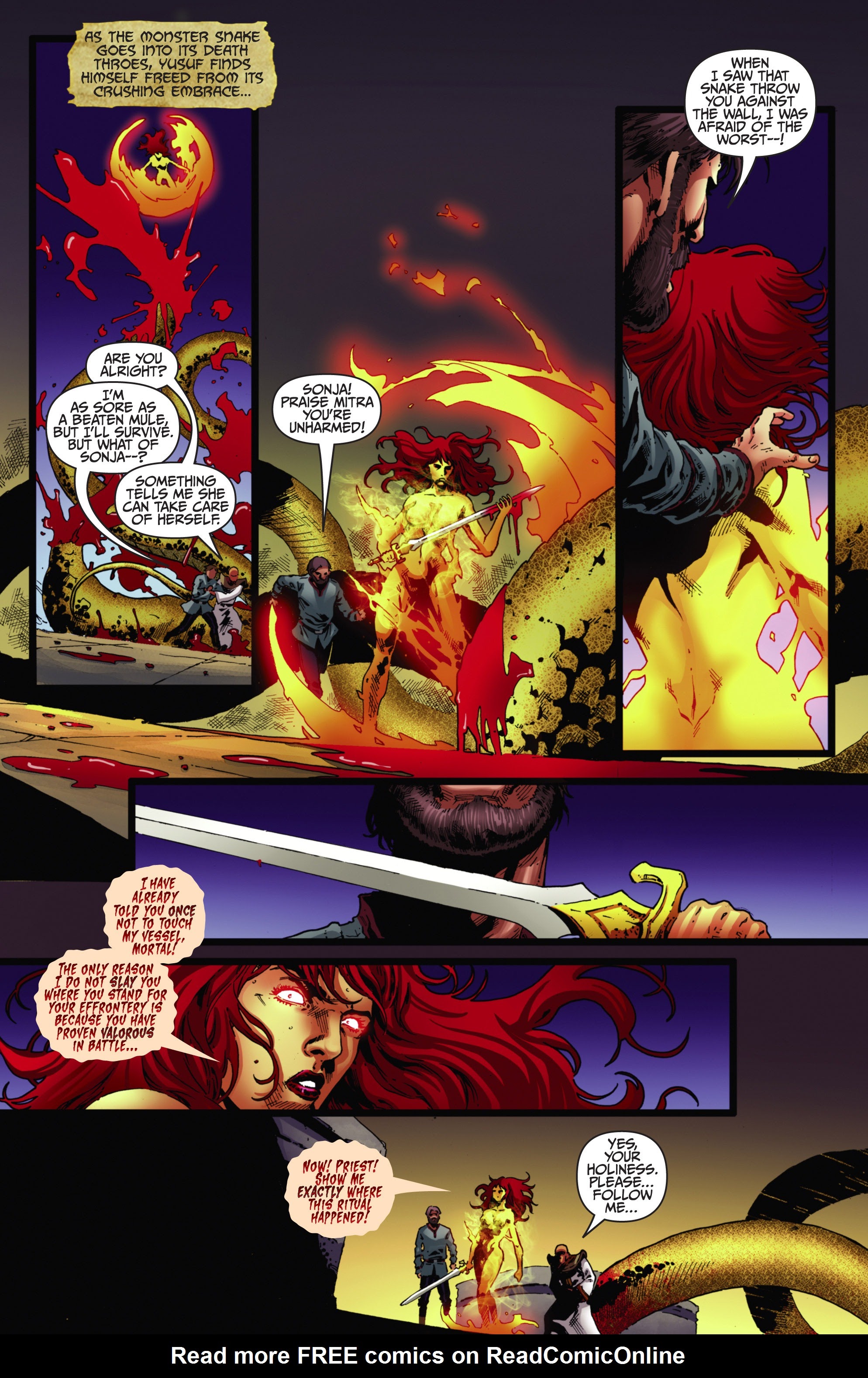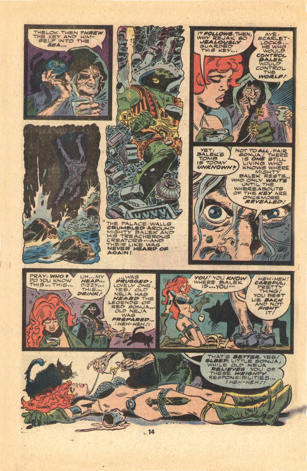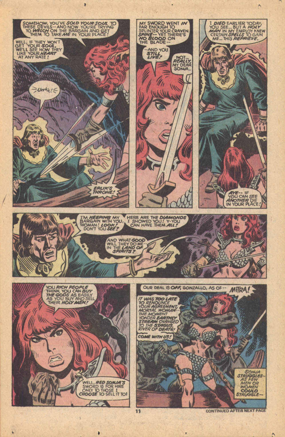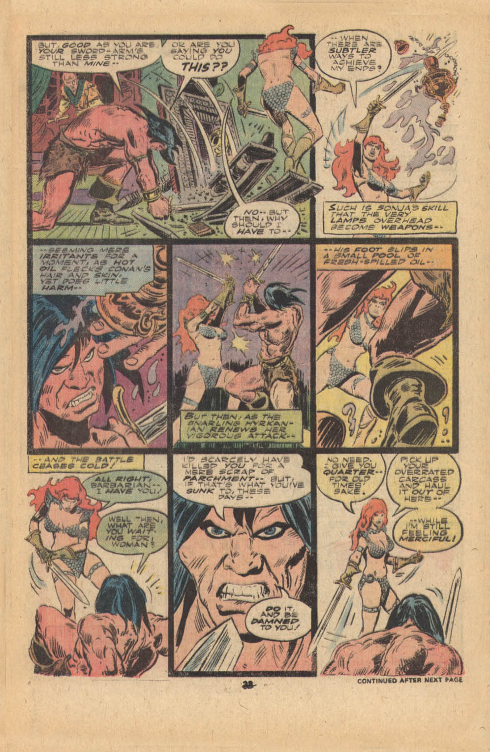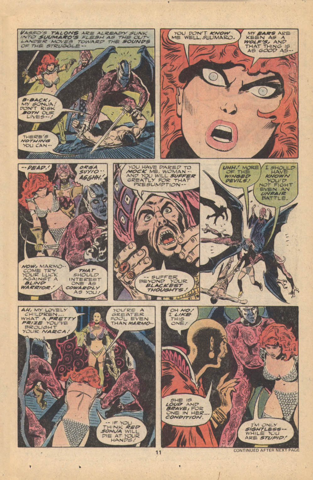 From that day forward, Sonja honed her skills as a warrior until she was unmatched by man or woman. Her reputation grew along with her exploits, and she was soon hired by King Ghaniff of the Hyrkanian city-state Pah-Dishah. Under Ghaniff’s orders, she was to lead his armies and steal a serpent tiara from the neighboring city of Makkalet. During this quest, she would encounter the Cimmerian barbarian Conan and begrudgingly work with him to obtain the tiara and slay its monstrous true form. However, she’d ultimately give Conan the slip and desert him, taking the now inert tiara for herself.