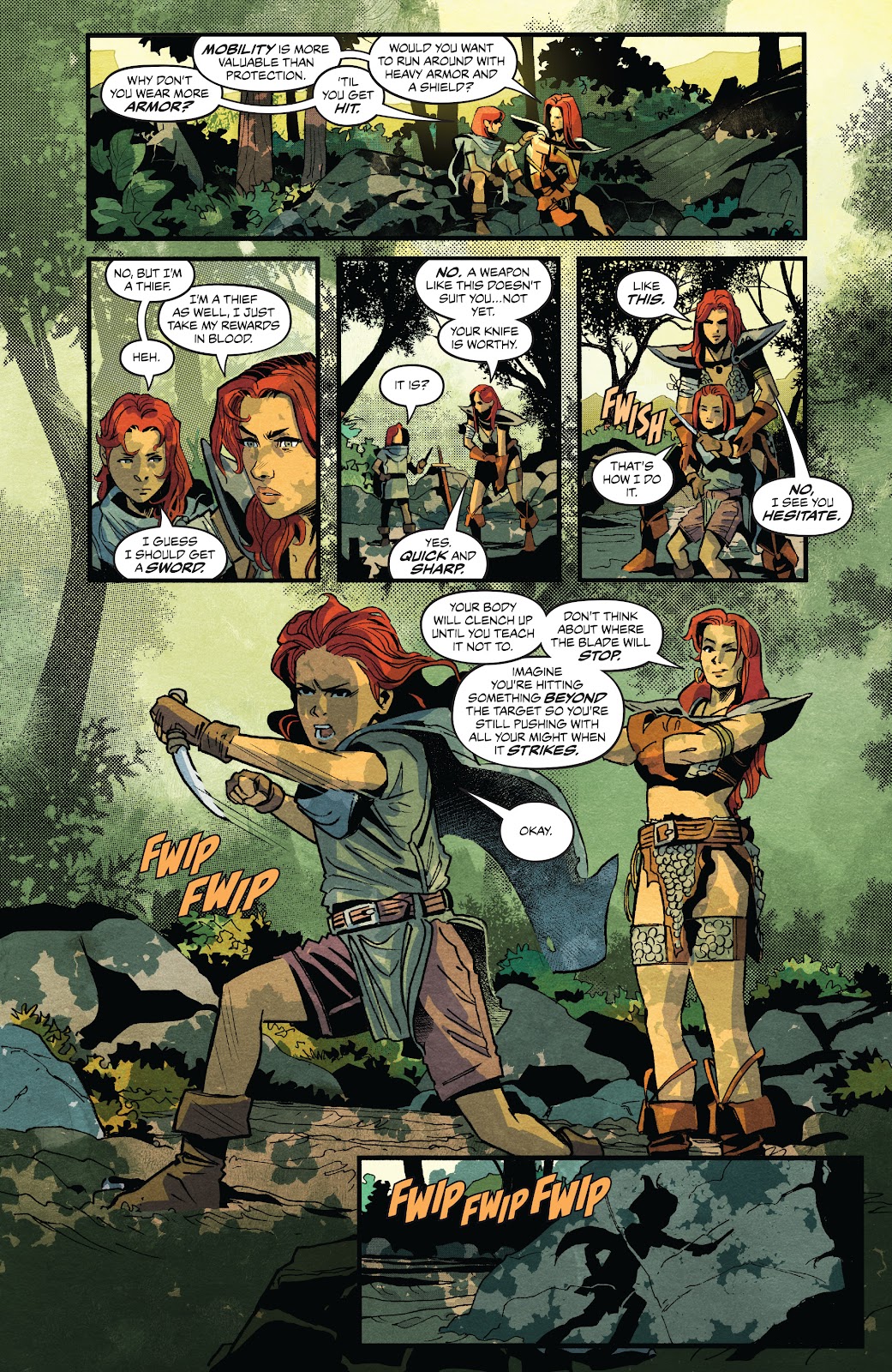 But before she was the fearsome warrior of legend, Sonja of Hyrkania was raised as the sole daughter among a family of farmers. An eager youth, Sonja spent her nights sneaking out of her home to practice with the swords her father (a retired commander) had used to train her brothers. Though this made her an oddity among the more feminine and romantic Hyrkanian women, Sonja was still content to follow in their footsteps as a mother who would stay at home and raise her children. However, this would change some time after her seventeenth birthday.