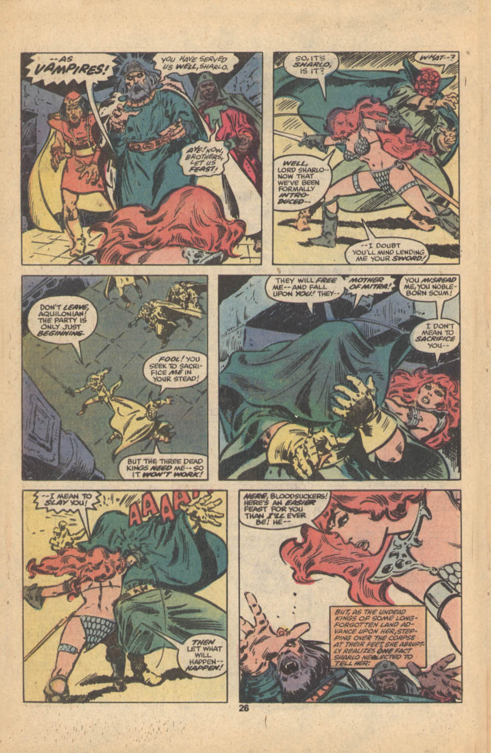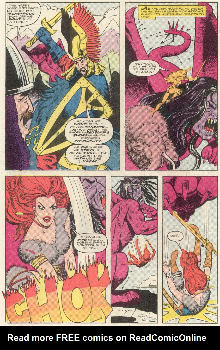 Know, o reader, of an era long forgotten… a time where heroes walked the land in search of fortune, a time of gods, monsters, and ancient magics. Hither came Red Sonja, warrior woman of majestic Hyrkania. Blessed by the red goddess with a skill in swords unparalleled by man, the crimson mercenary journeyed the gleaming kingdoms of Hyboria in search of adventure!