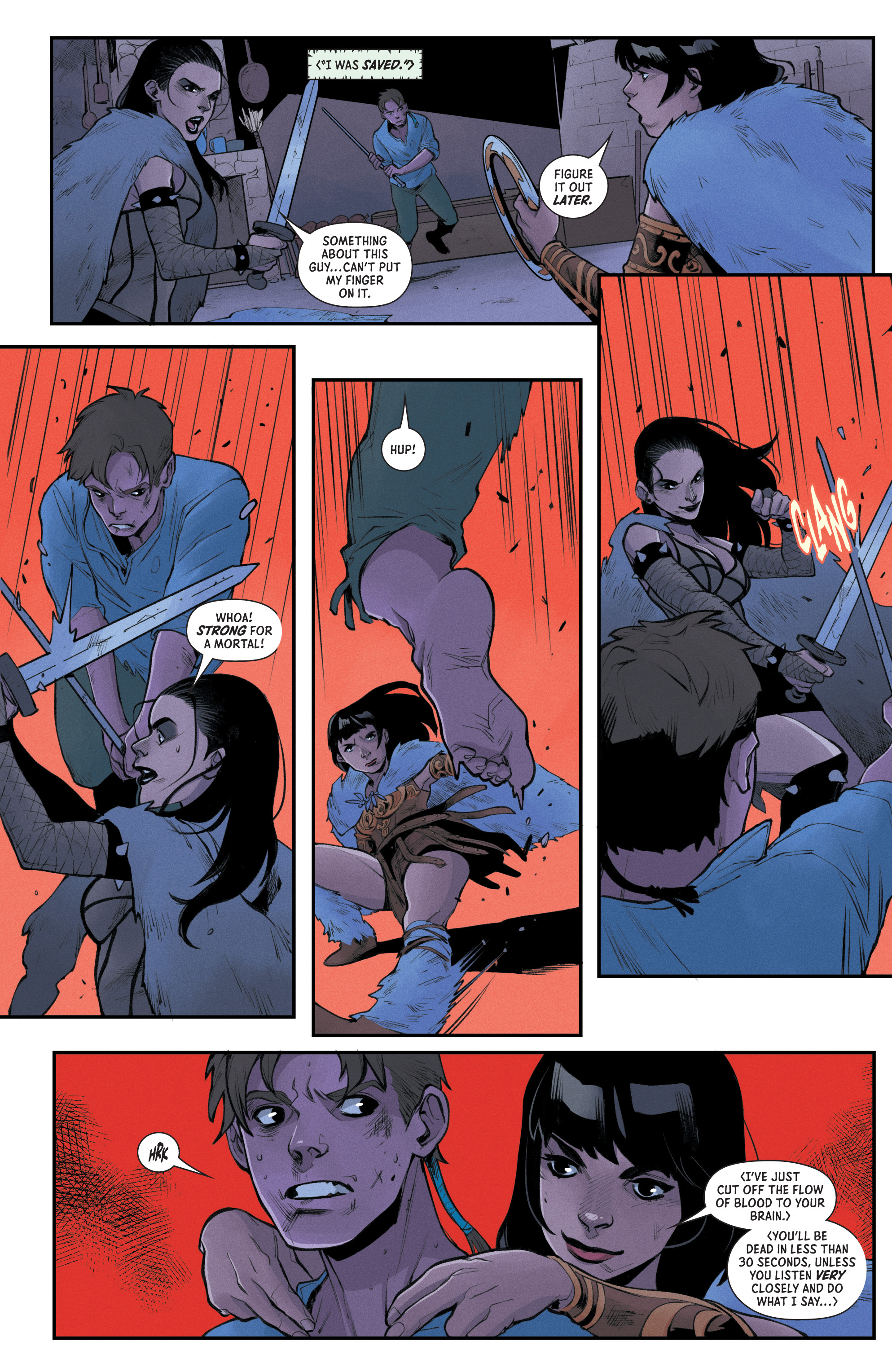 Even without her swords, Sonja has a way larger variety of blades to draw from, like axes, spears, and scythes, which she’s used far more extensively than Xena’s spear.