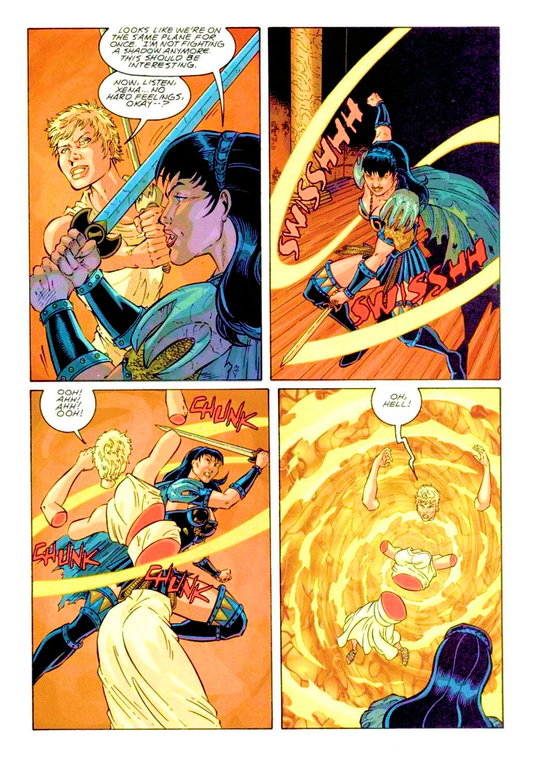 Though that’s not to say Xena doesn’t have any advantage here. Thanks to the PS1 game, she can amp her sword with elements like fire, ice, or electricity, giving her ways to combat Sonja’s blessed sword… but they come with a few asterisks.